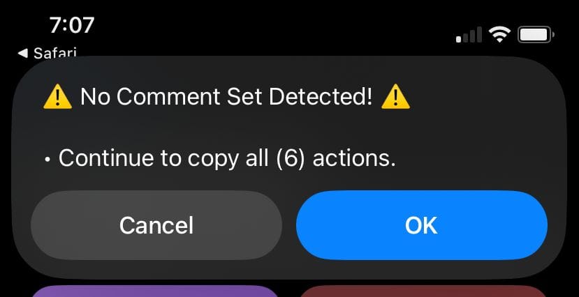 The shortcut detects how many actions my shortcut has. Since I haven’t set up the comments for using the encasing actions, it will copy all 6 actions