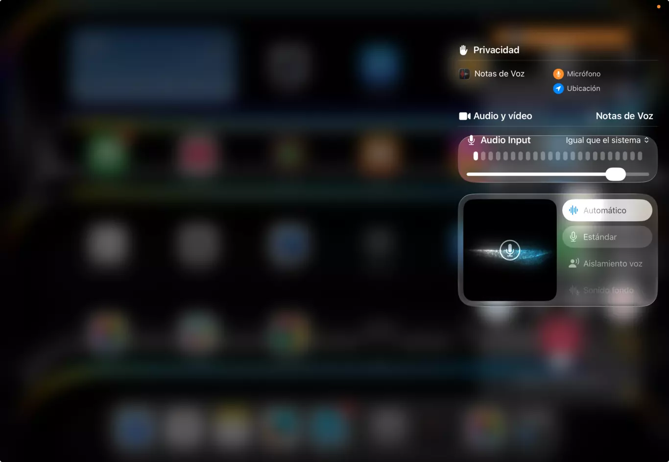 If you're a content creator or work with audio on your iPad, there's a long-requested improvement: gain control for external microphones. In beta 2, you can now adjust the input gain directly from the input panel in Control Center. Furthermore, you can customize where locally captured audio recordings are saved, a detail that greatly streamlines the workflow for those who record podcasts, videos, or any content requiring quality audio.
