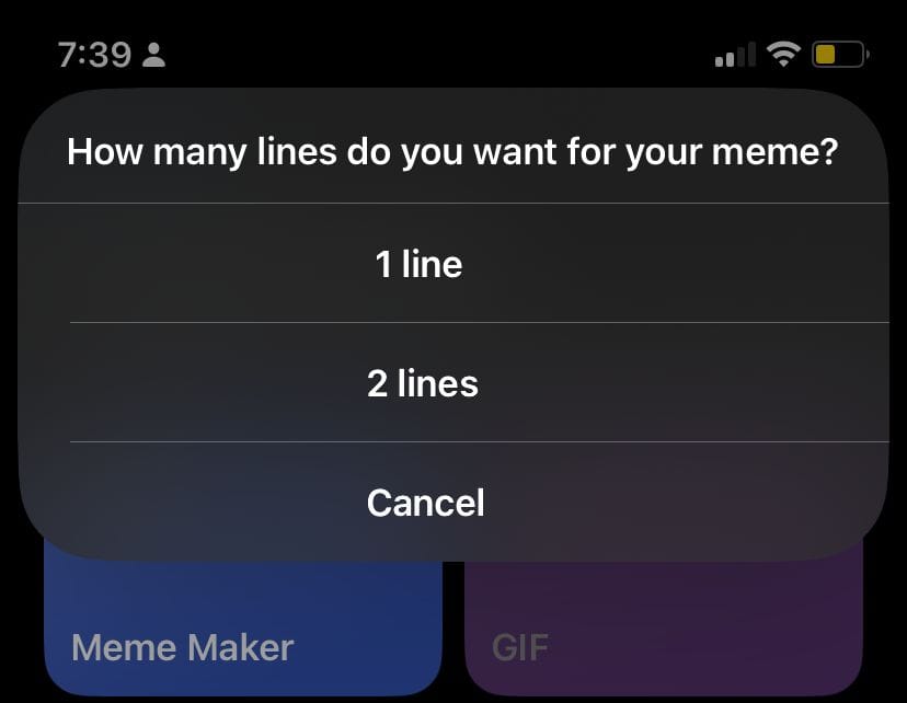 1.Run the Shortcut: Open the Shortcuts app and select "Meme Maker".