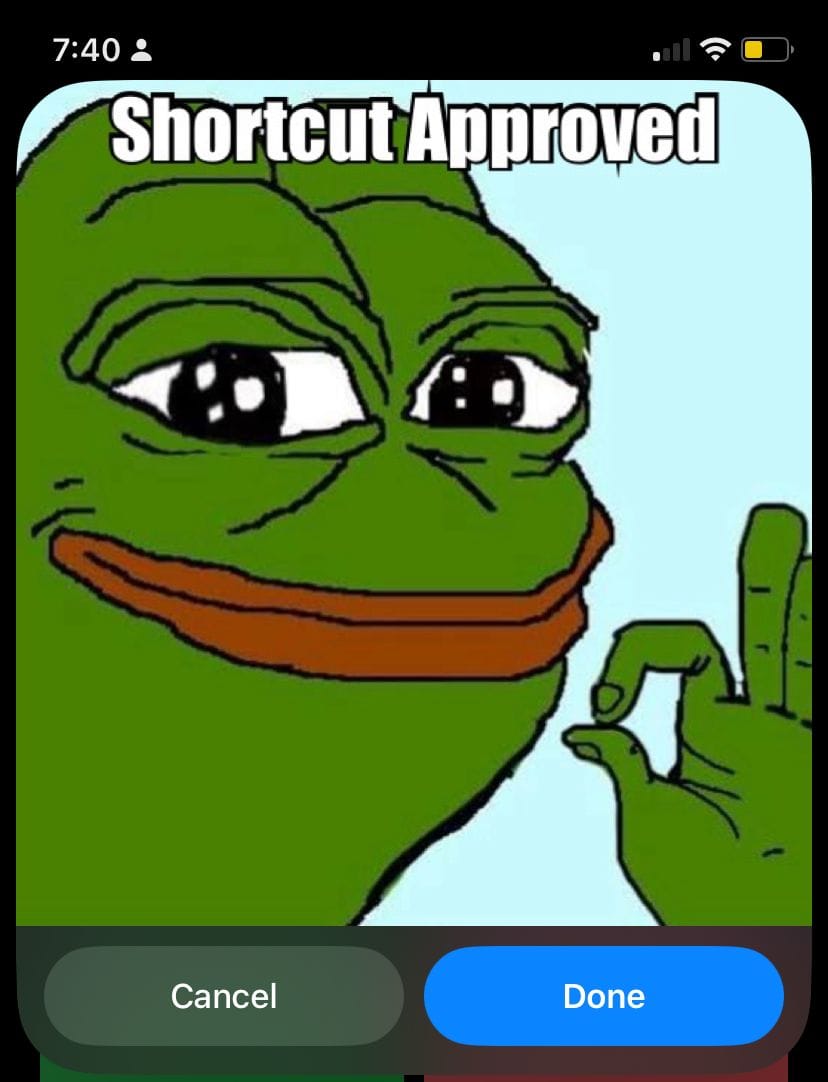 5.Preview and Save: Once you have entered the texts, the shortcut will generate a preview of the meme.If you are satisfied with the preview, the shortcut will ask if you want to save the meme to your photo library.
