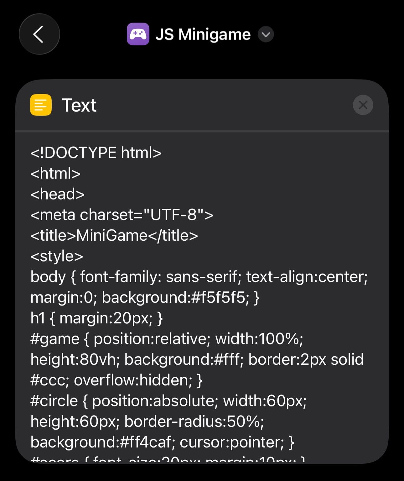 With this setup, you can run any custom HTML + JavaScript project inside Shortcuts. You’re not limited to games: you could make interactive tools, forms, or even simple dashboards, all running locally without an internet connection.