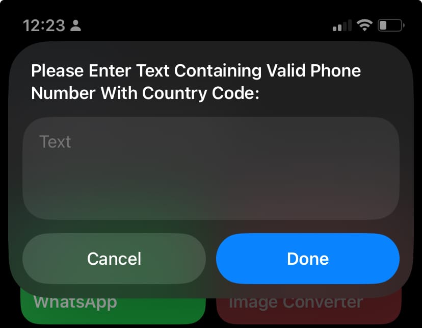 - Activate the Shortcut: Open the Shortcuts app and select OneTouch WhatsApp. The shortcut will find the copied number on its own.