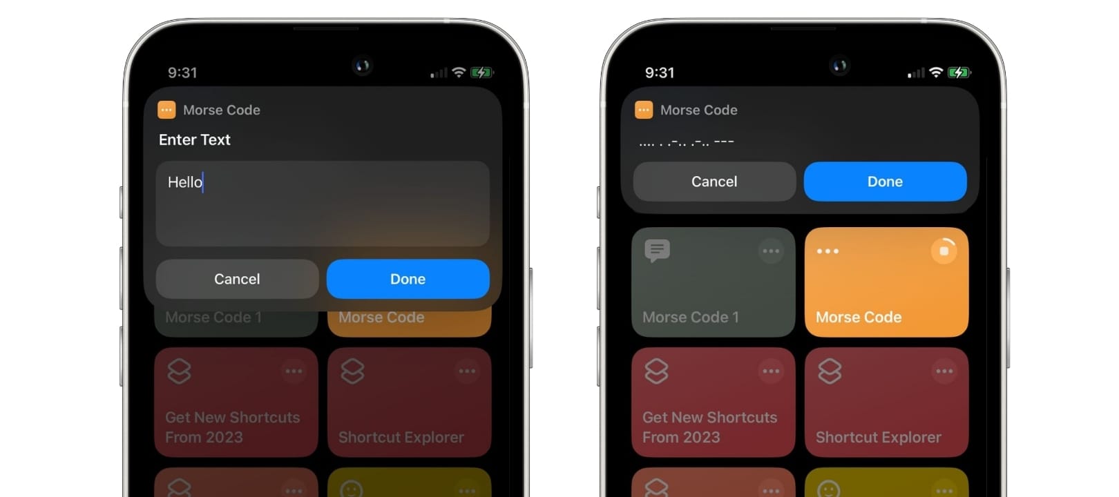 The process is simple and efficient. By entering a message into the shortcut, it converts each character into its Morse Code equivalent. The output is presented in the form of sequences of dots and dashes, ready to be transmitted or interpreted as needed.