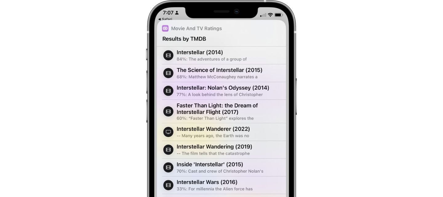 3. The shortcut will search for movies with the name you entered and display a list of matches.