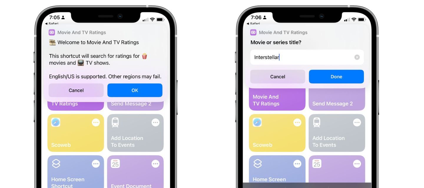 - Open the "Movie And TV Ratings" shortcut on your device.