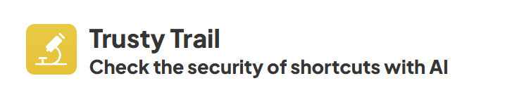 Trusty Trail is a tool developed by @MIKL that allows users to verify the safety of any shortcut before using it. By combining an advanced script with an AI-powered API, Trusty Trail scans shortcuts for suspicious actions, such as:
