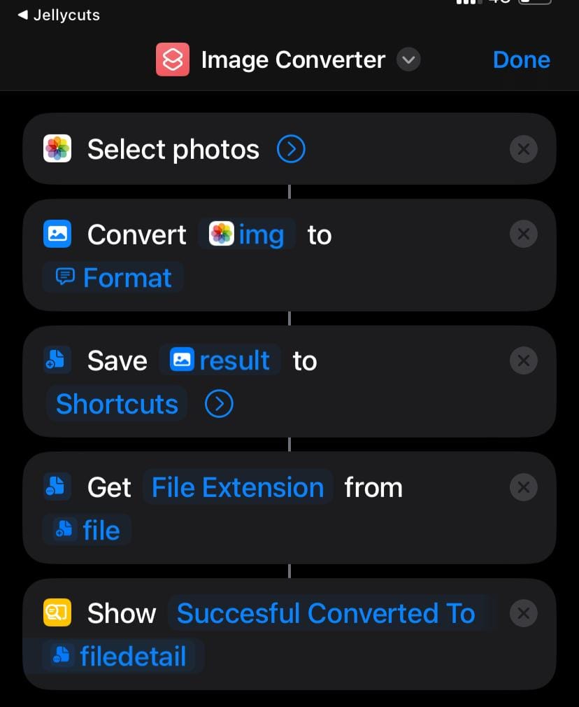 Tutorial to Create an Image Converter Shortcut with Jellycuts